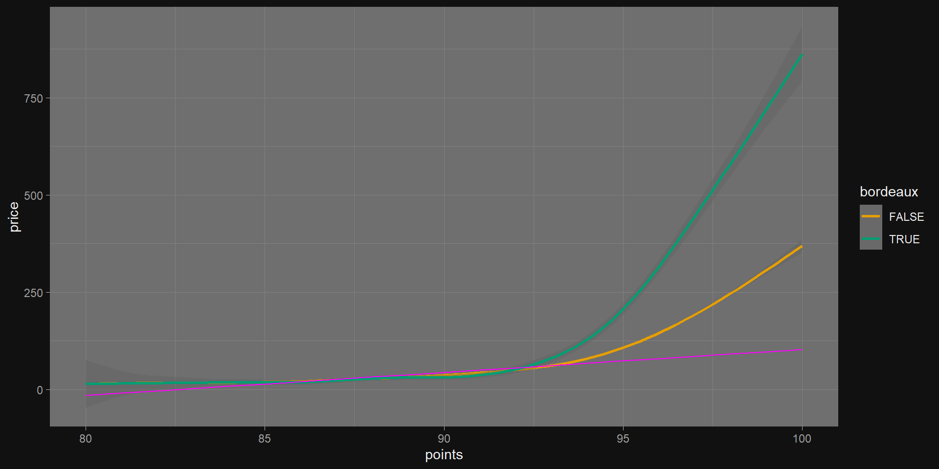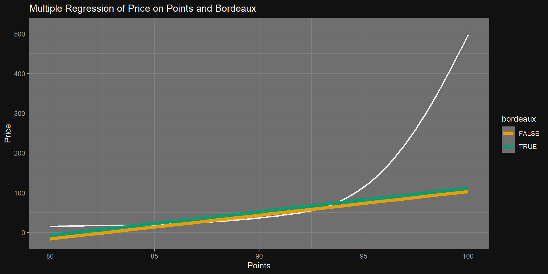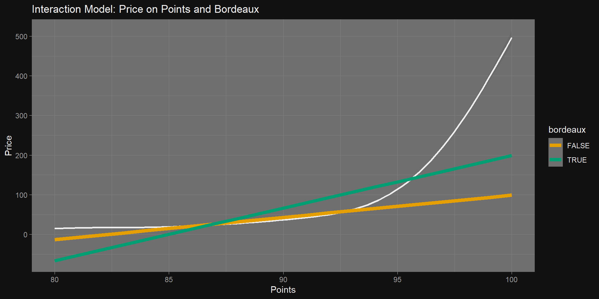 ms <-list(lm(price ~ points, data = train),lm(price ~ points + bordeaux, data = train),lm(price ~ points * bordeaux, data = train))