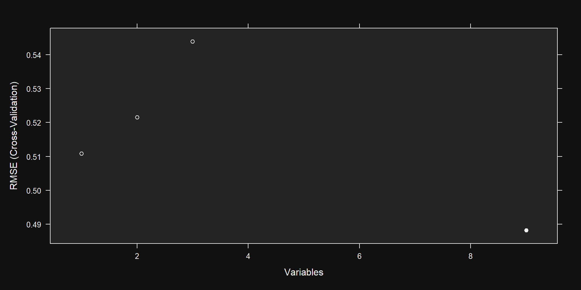 results <- rfe(select(wino_tr, -lprice), wino_tr$lprice, sizes = c(1:3), rfeControl = control)