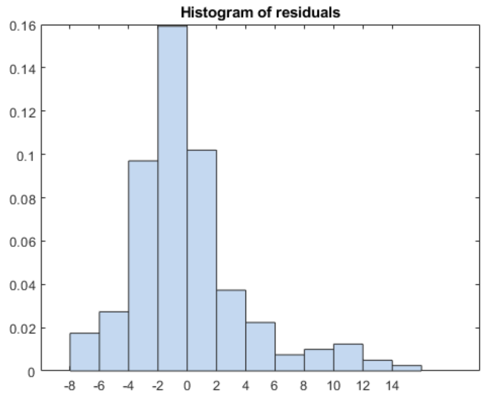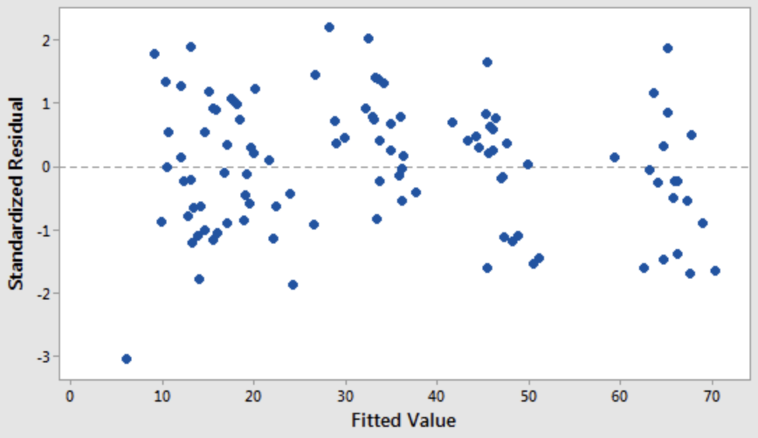 A scatter plot of target variable value and residual (model error) should look like white noise.