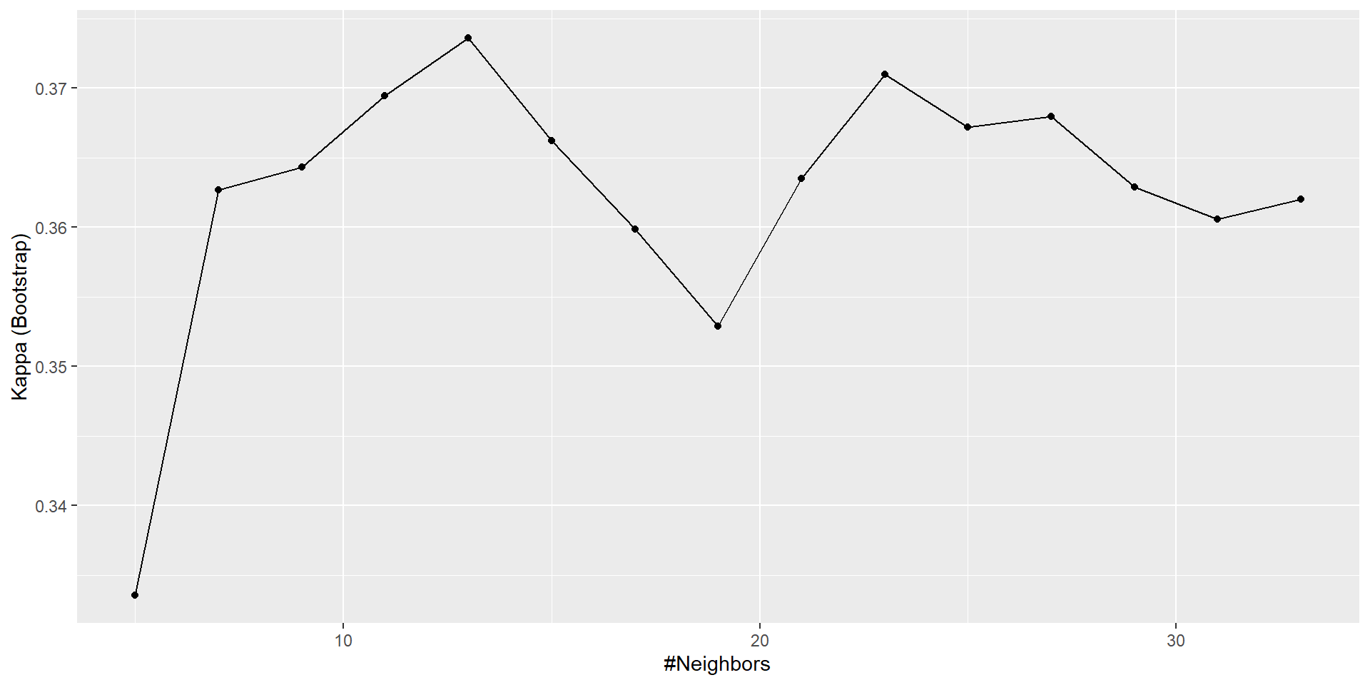 The final value used for the model was k = 13.