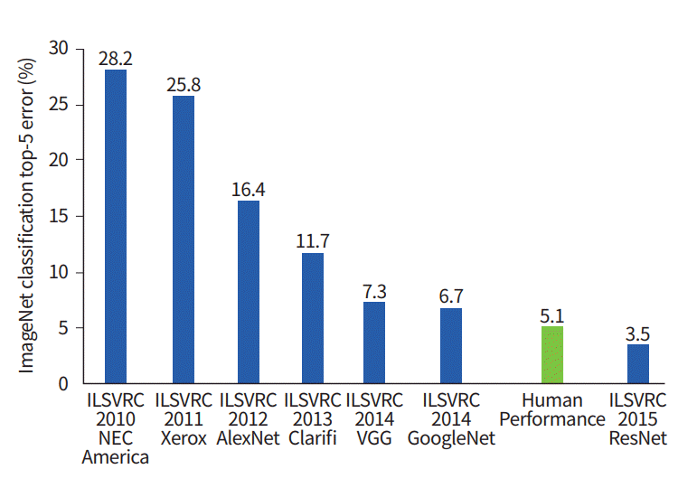 - So neural network approaches started demonstrating great performance in competing with human beings in many areas, such as computer vision or speech understanding.
