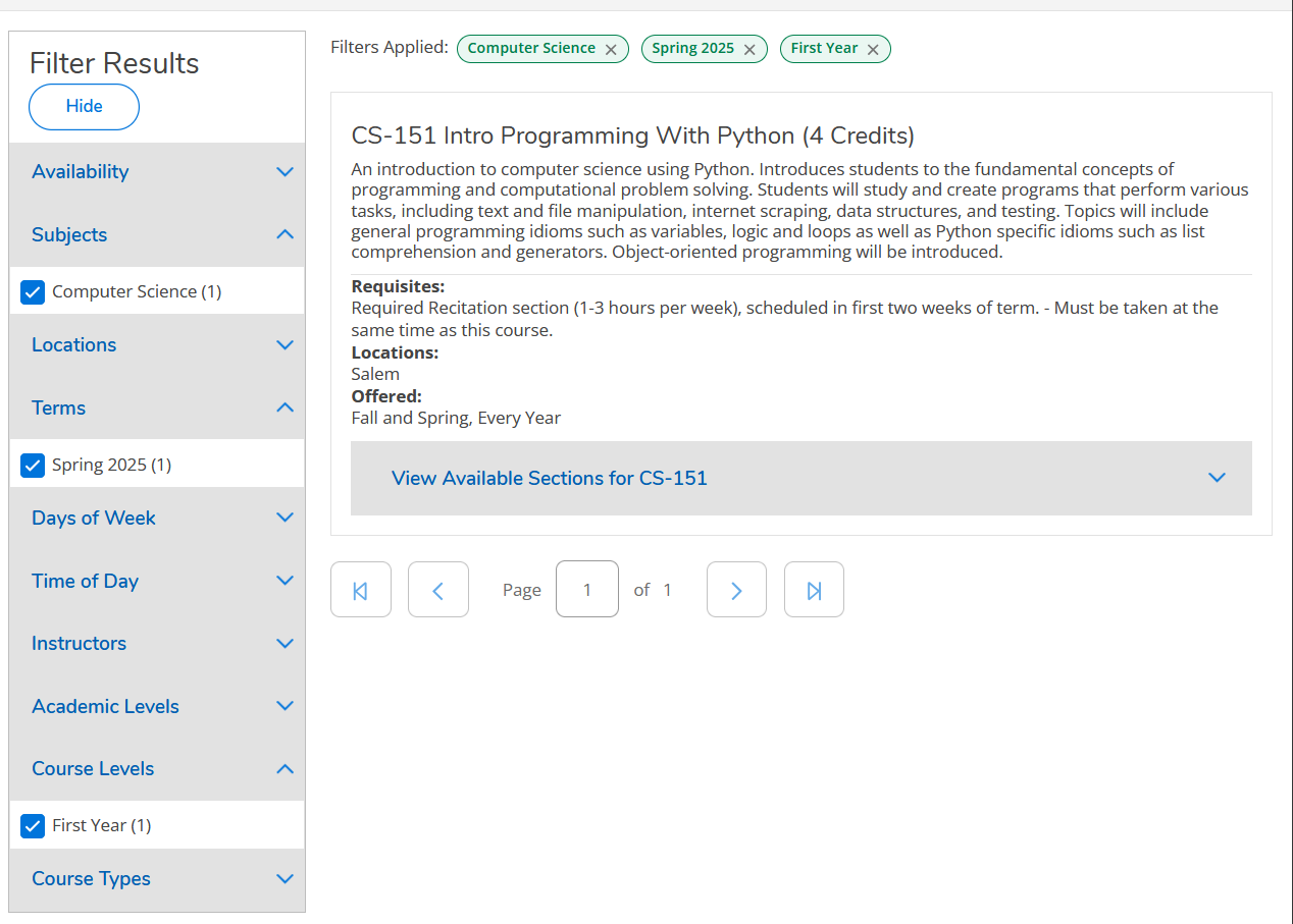 - CS 370 Python Data Science, offered next term, would be a 100-level class under thes guidelines - it only requires CS 151! Go take it!