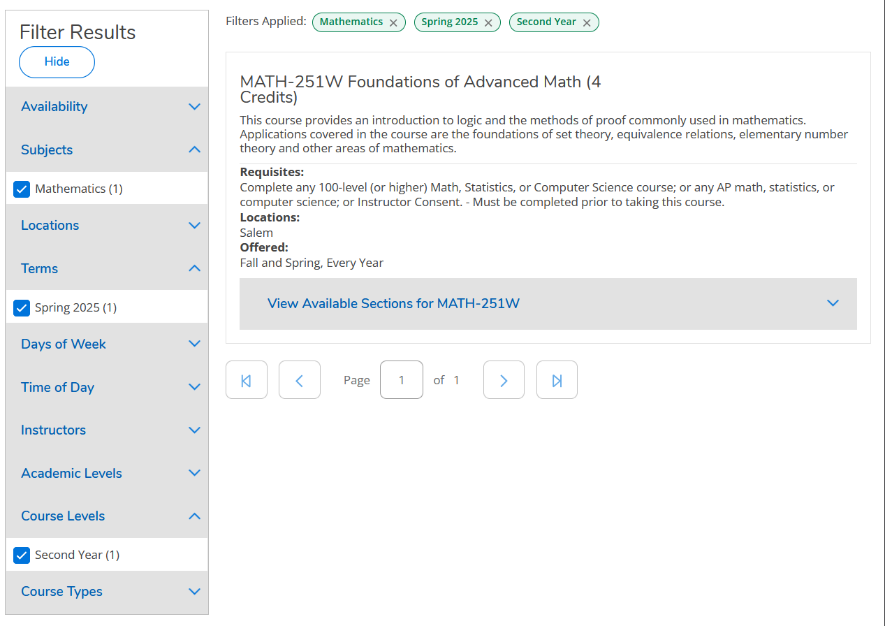 - A class at Willamette: prefix and number