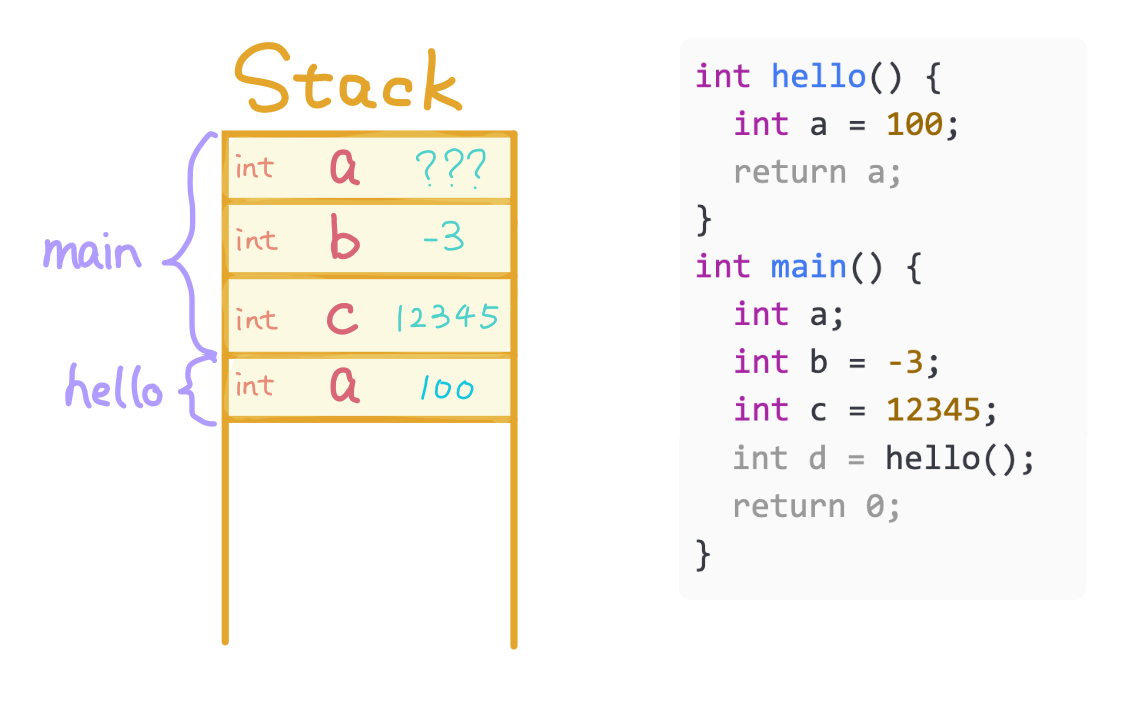 | Holds Function Variables | Returned by a function (malloc) |