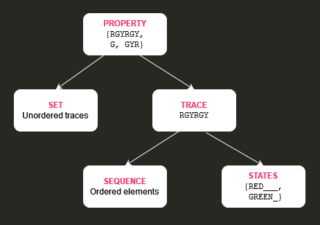 the set of all sequences over precisely the states {"GREEN_", "YELLOW", "RED___"}