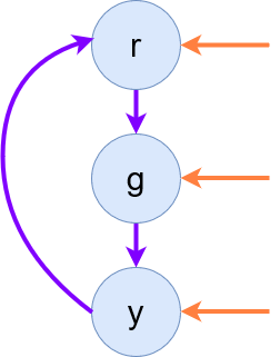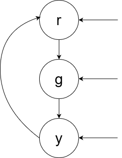 R ⊂ S × S is a left-total transition relation.{("GREEN_", "YELLOW"),