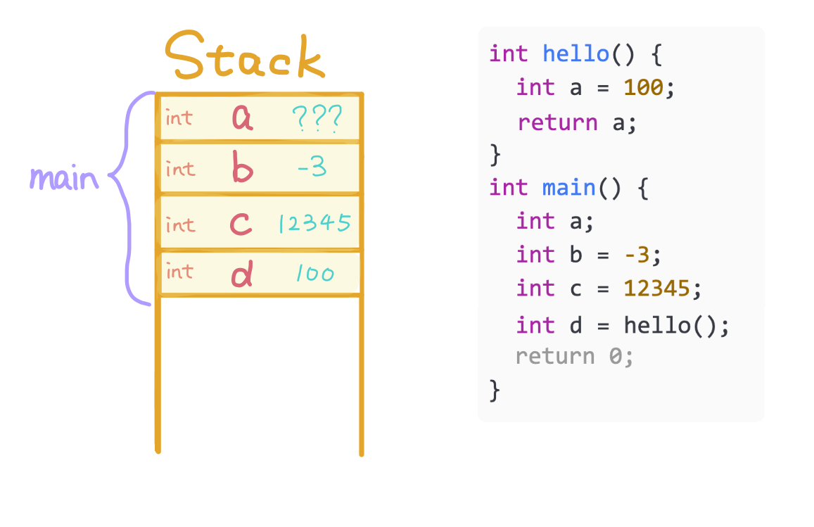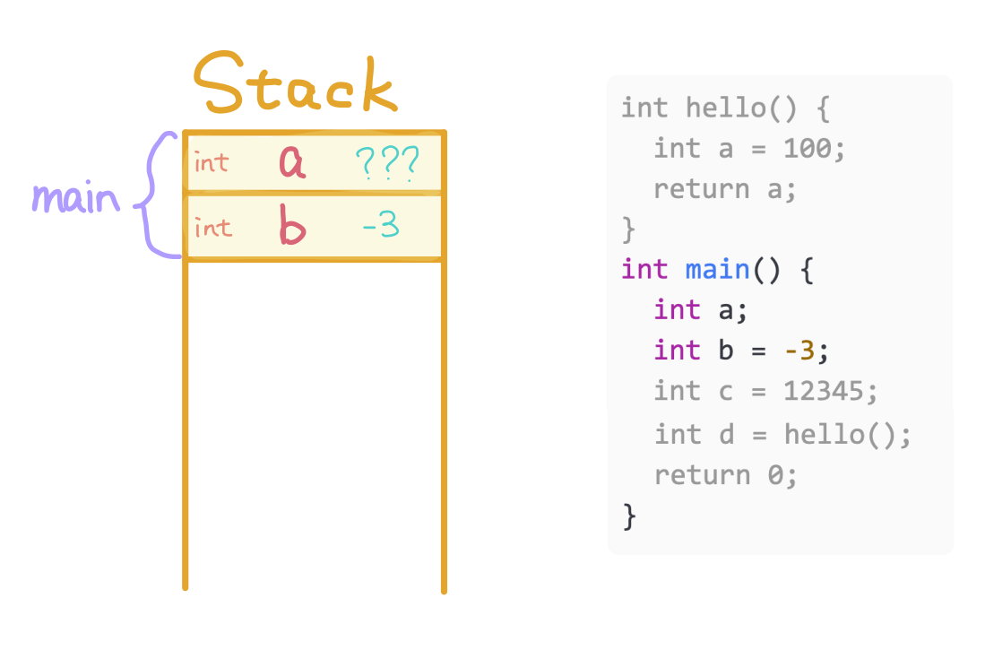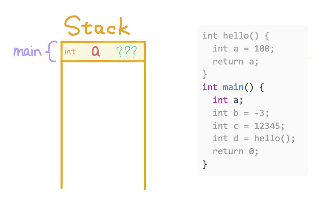 a for mainb for mainc for mainsizeof(int) bytes for variable a for hello